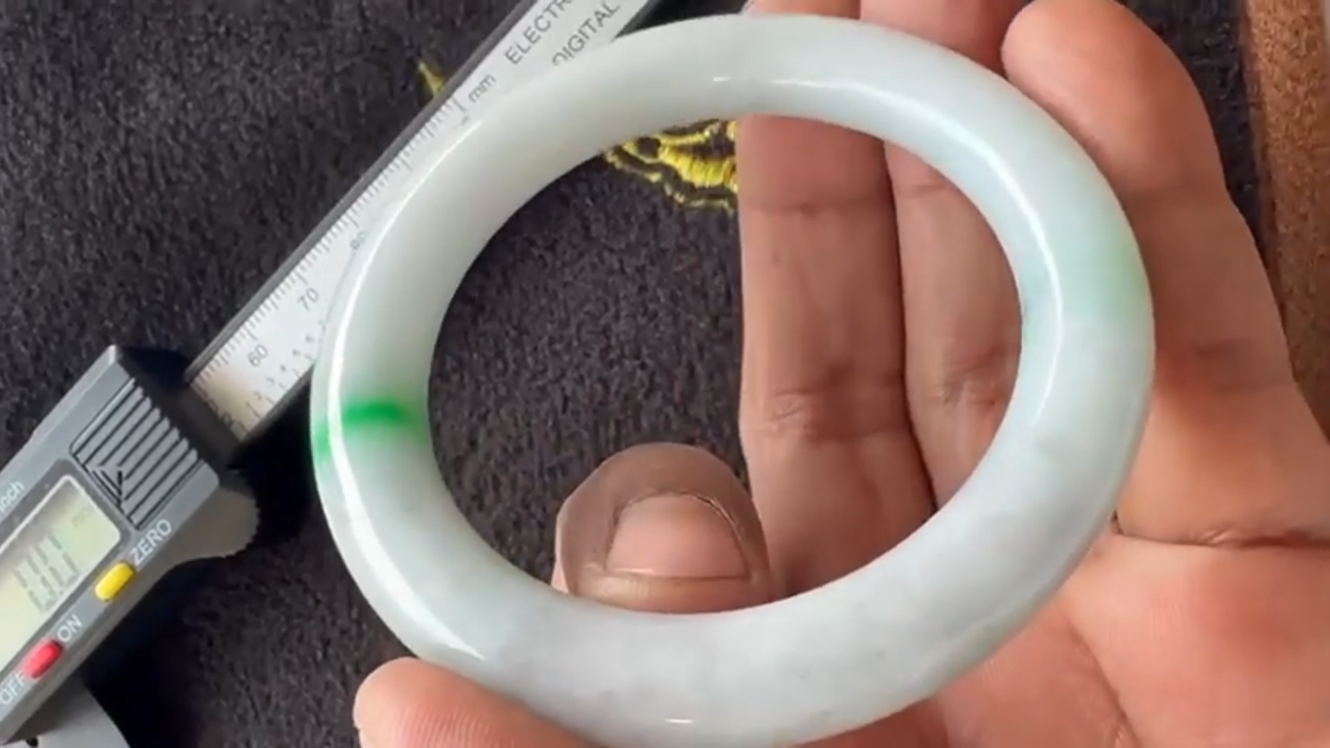 ホワイト翡翠バングルとなりまして、白と緑