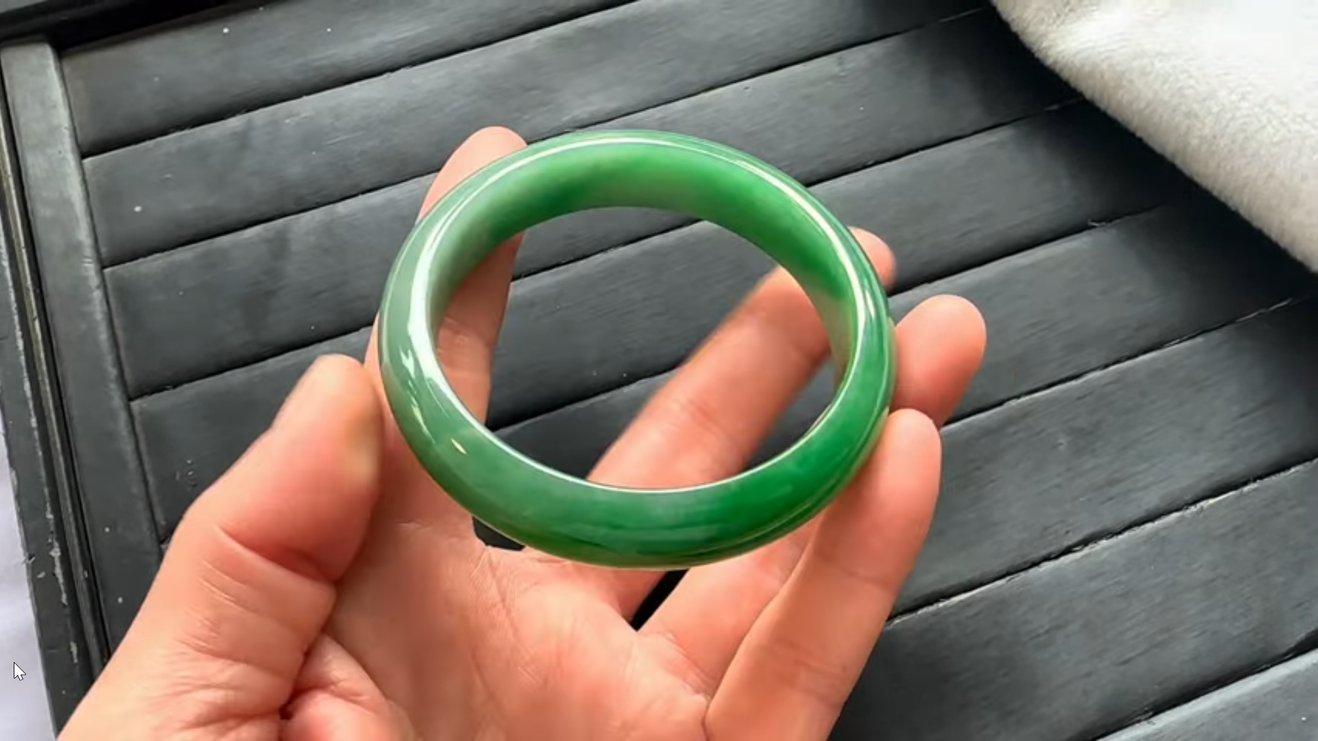 グリーンカラーが美しい、高級ろうかん翡翠バングルのご紹介となります!