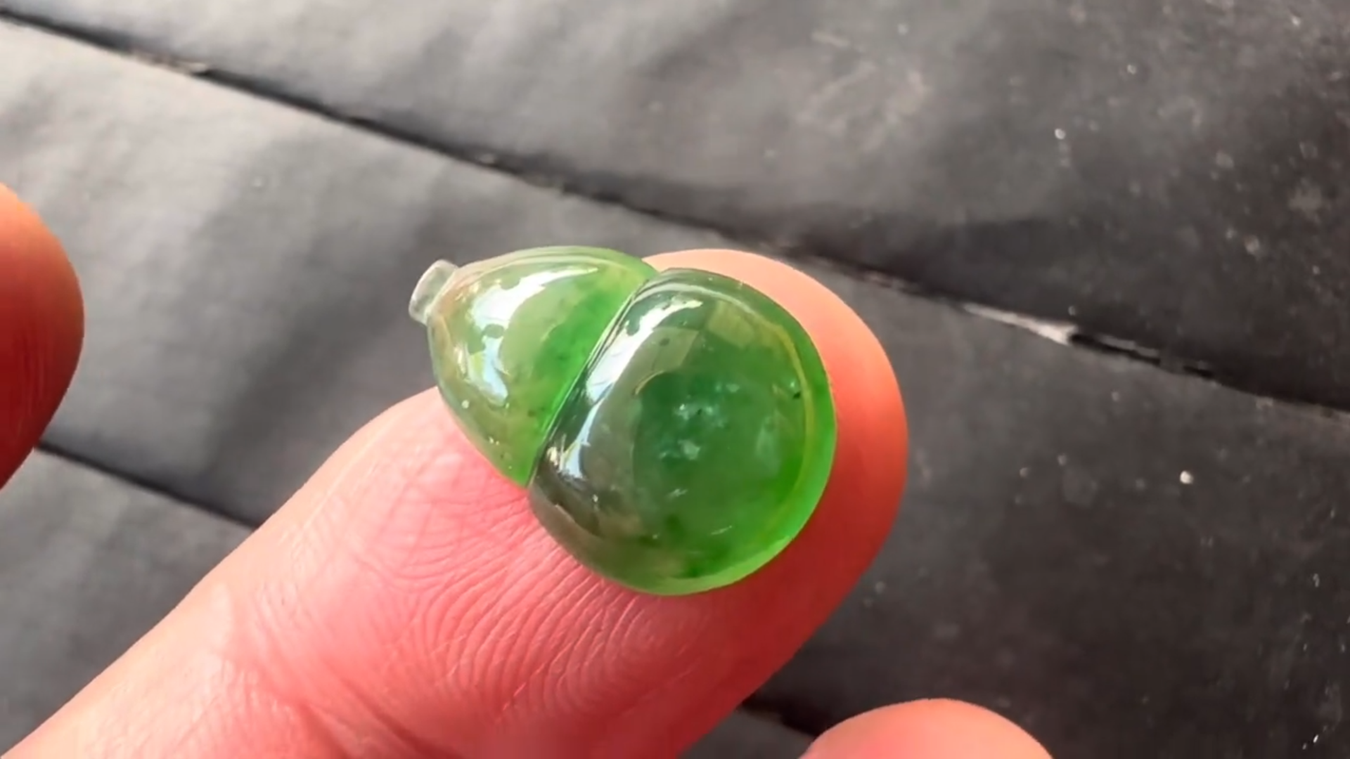 グリーンカラーが鮮やかな、ろうかん翡翠カービングのご紹介となります!
