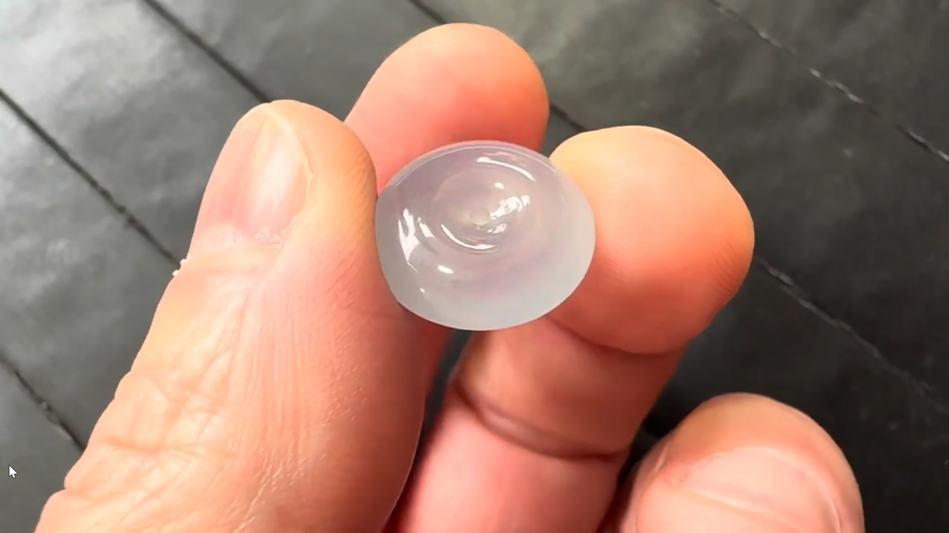透明度の高い氷翡翠となりまして、カービングを持つ指が