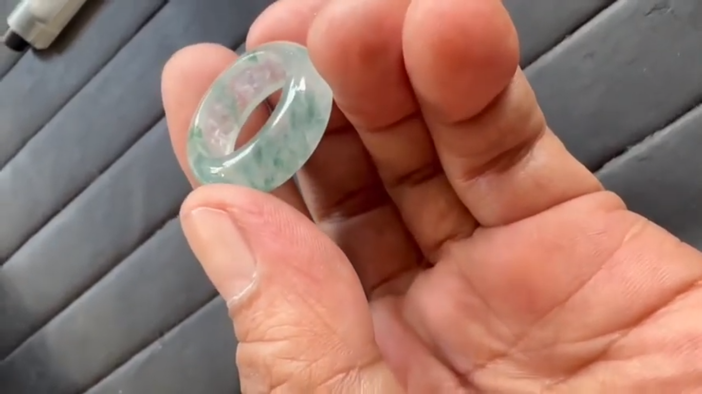 透明度が素晴らしい、高級くりぬき氷翡翠リングのご紹介となります!