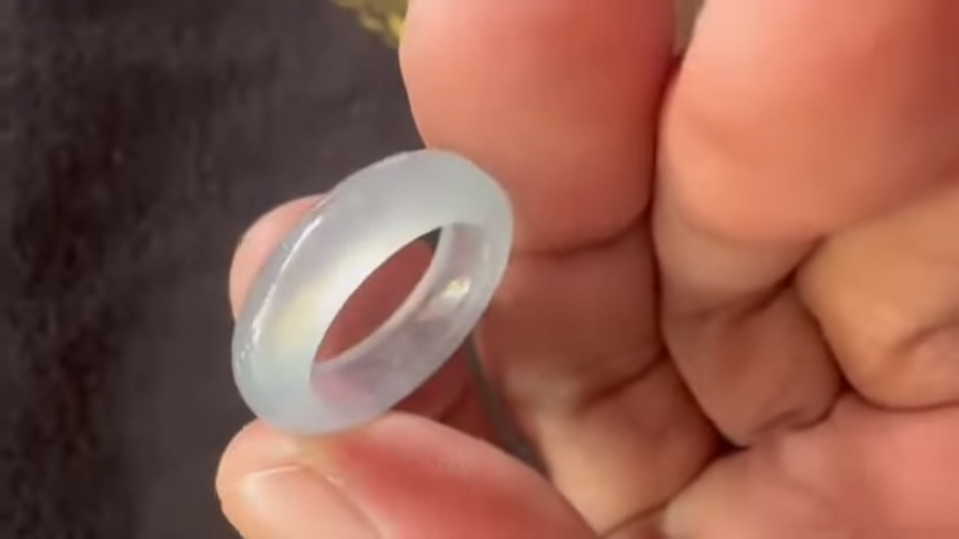 透明度が素晴らしい、くりぬき氷翡翠リングのご紹介となります!