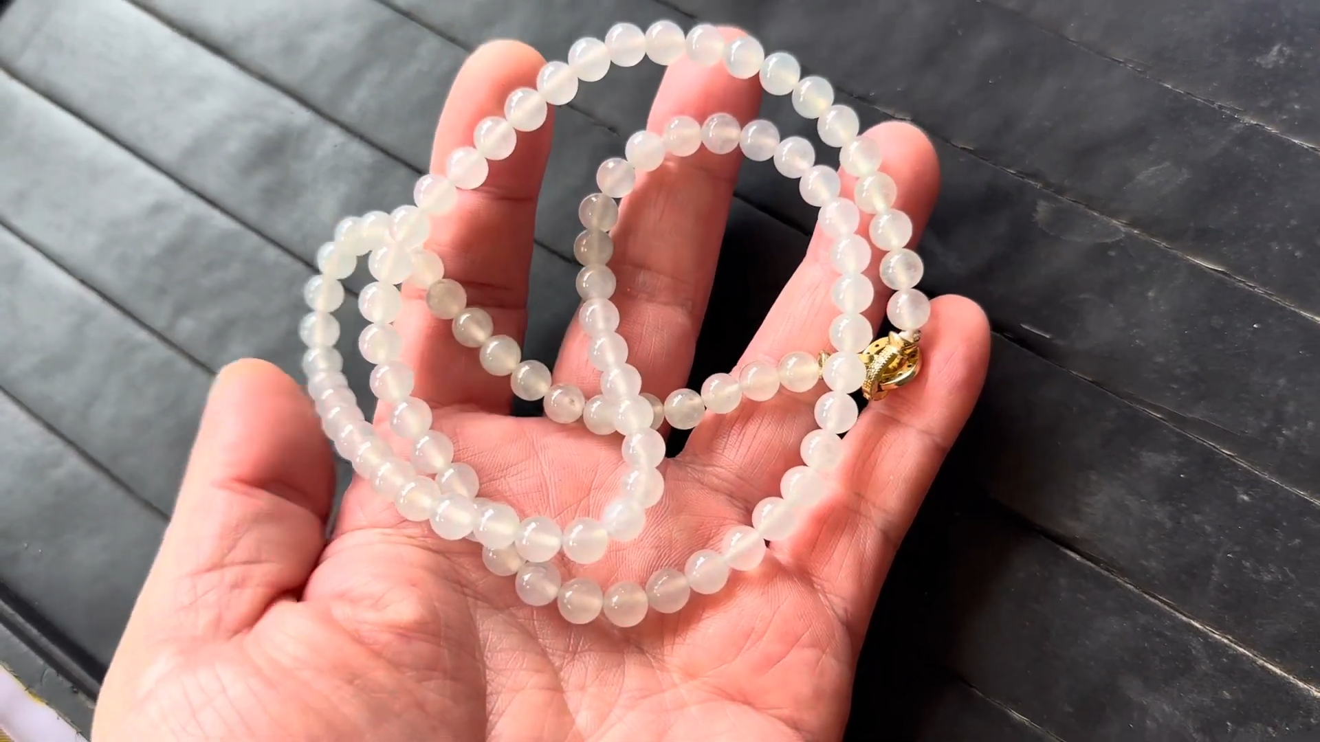透明度が素晴らしい、氷翡翠ビーズネックレスのご紹介となります!