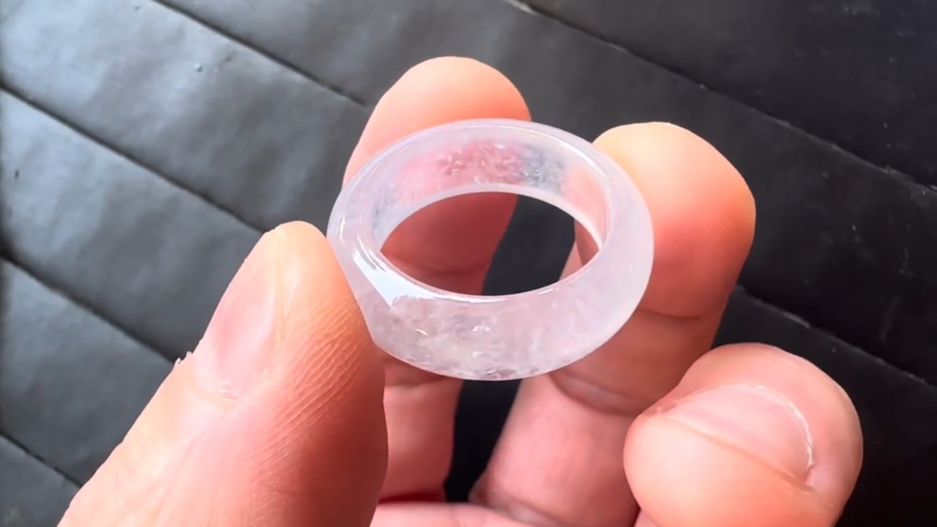 透明度が素晴らしい、高級くりぬき氷翡翠リングのご紹介となります!