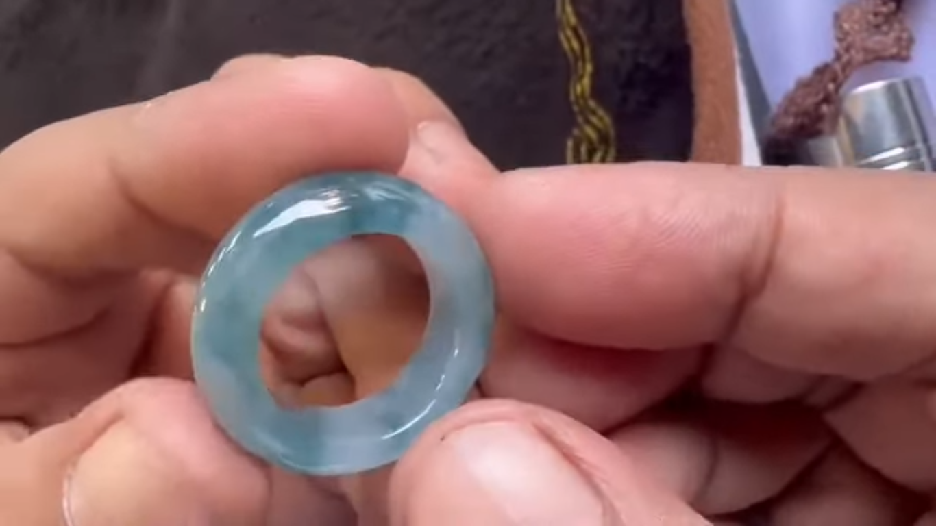 お色が希少な、高級くりぬきアイスブルー翡翠リングのご紹介となります!