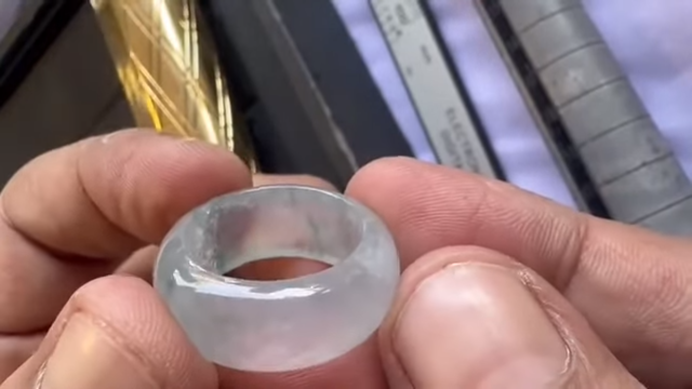 透明度が素晴らしい、くりぬき氷翡翠リングのご紹介となります!