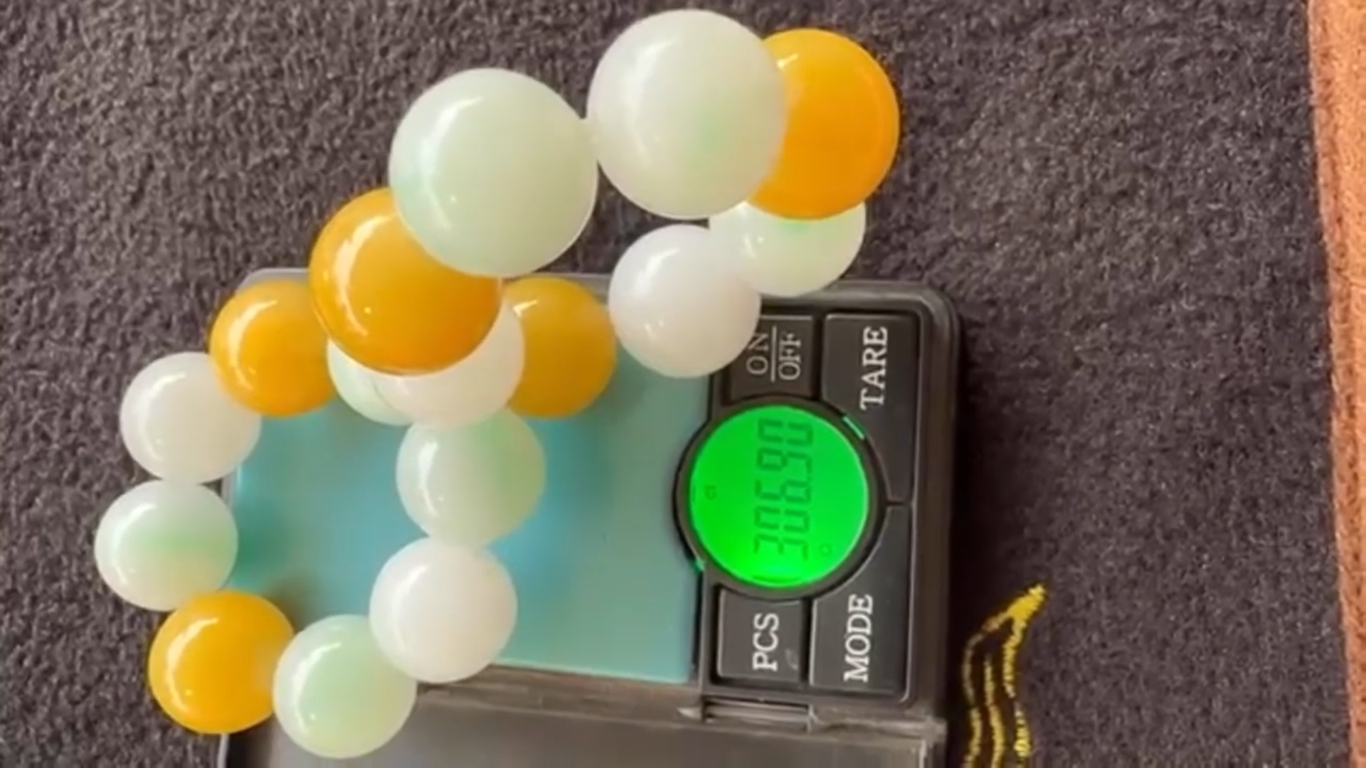 お色が鮮やかな、格安三彩翡翠ビーズブレスレットのご紹介となります!