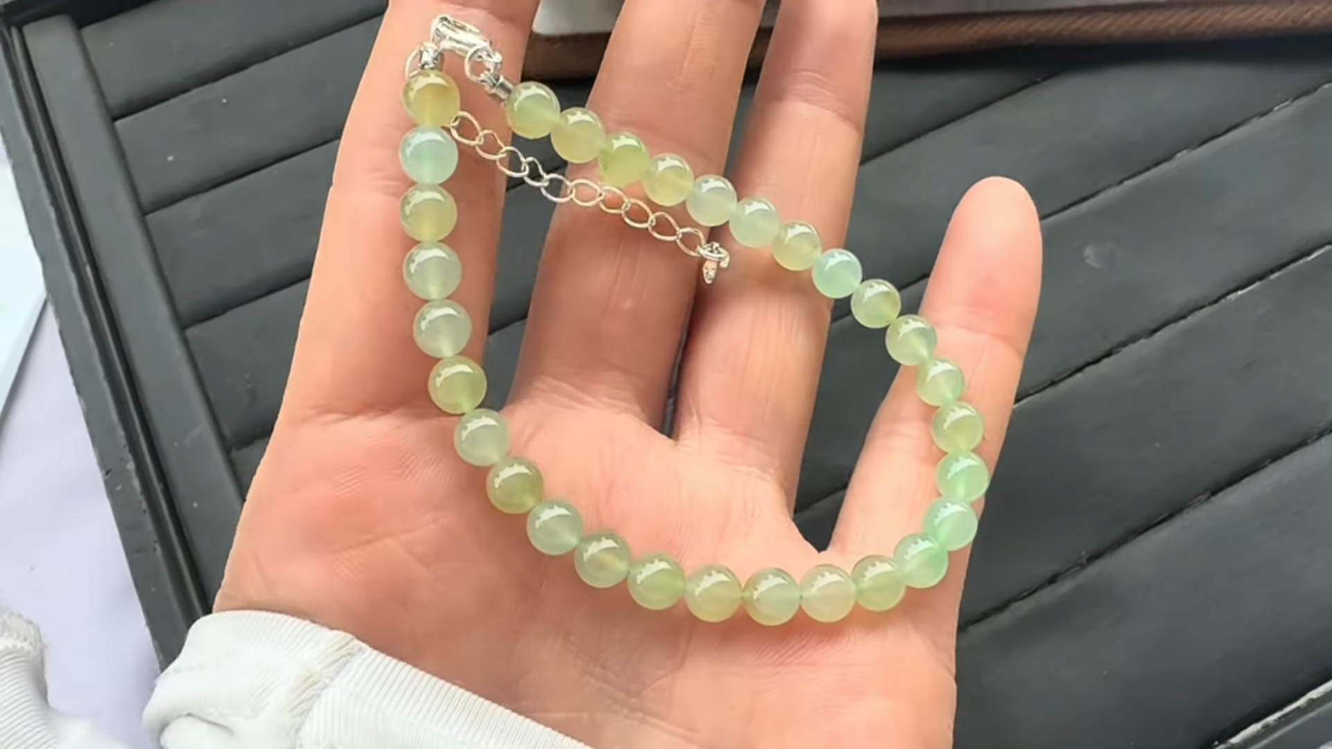 透明感が美しい、氷翡翠ビーズブレスレットのご紹介となります!