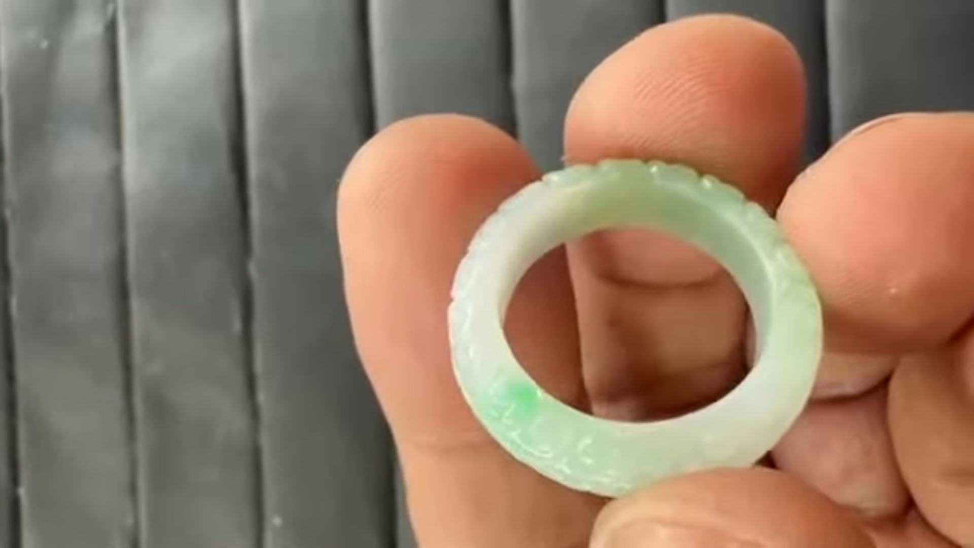 質感が素晴らしい、氷翡翠カービングリングのご紹介となります!