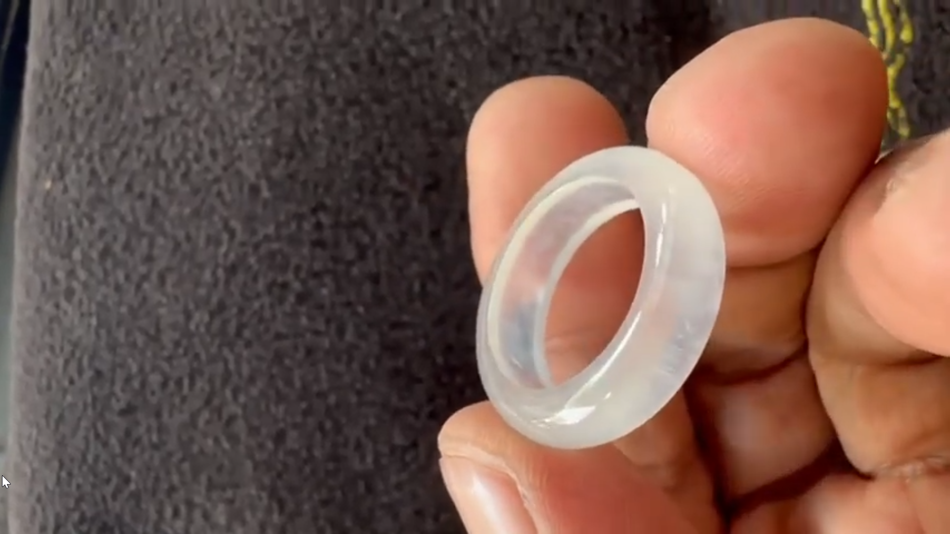 持つ指が完全に透けて見えるガラス質の