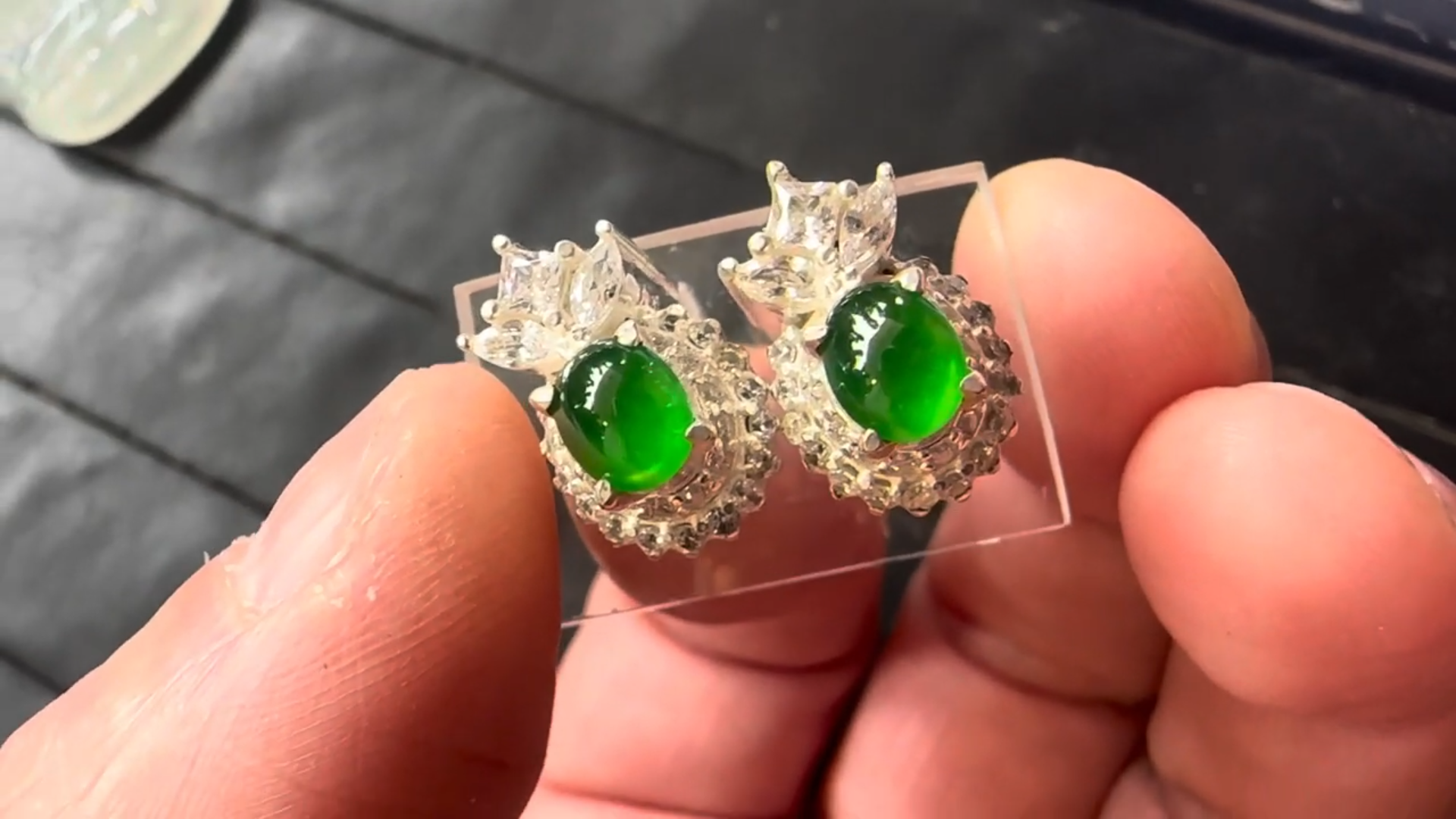 テリが素晴らしい、ろうかん翡翠ペアルースのご紹介となります。