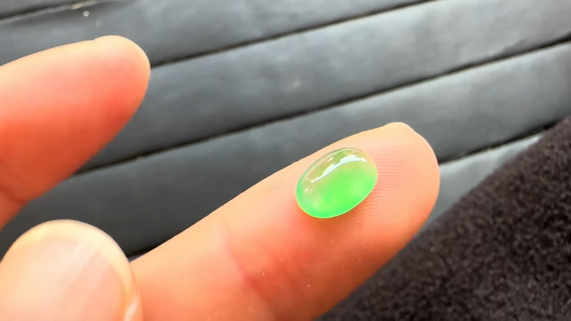 お色がキレイな、アイス蛍光翡翠ルースのご紹介となります!