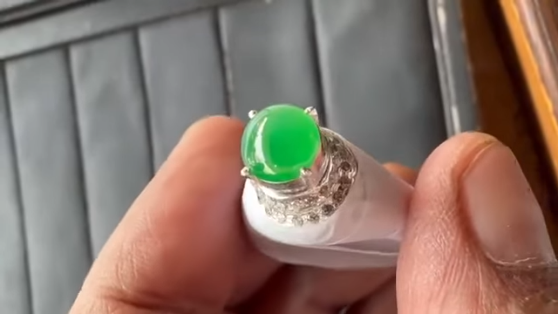 お色がキレイな、蛍光翡翠ルースのご紹介となります!