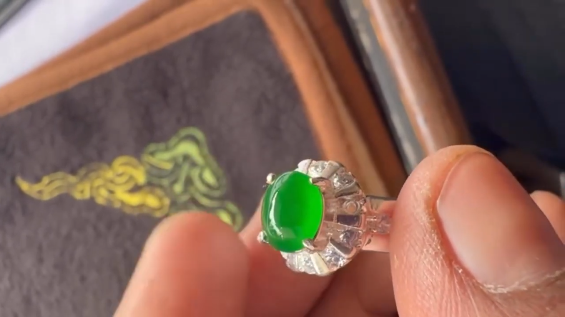 お色が素晴らしい、蛍光翡翠ルースのご紹介となります!