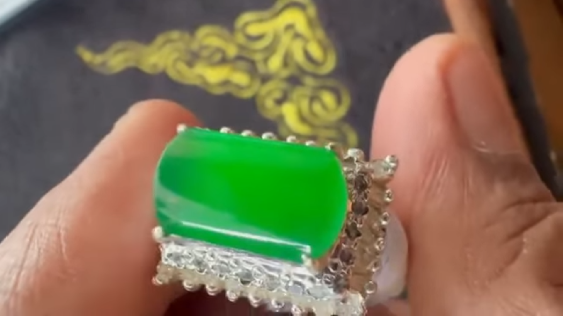 お色がこの上ない、高級蛍光翡翠ルースのご紹介となります。