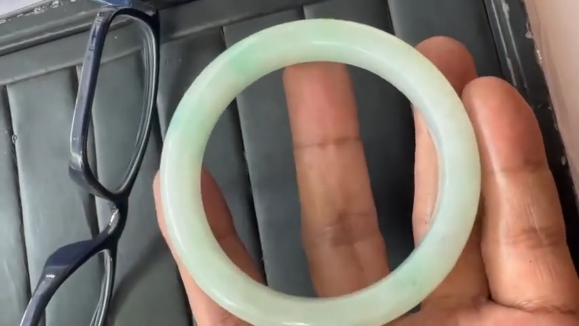 お色のさわやかな、本翡翠バングルのご紹介となります!