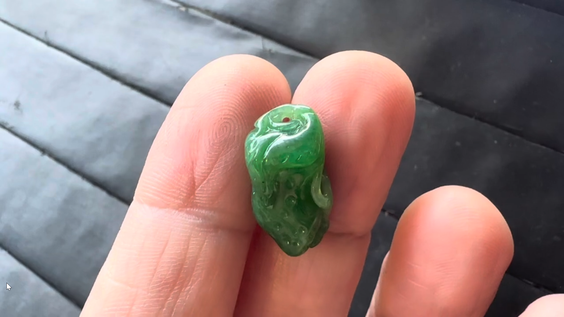 グリーンカラーが鮮やかな、ろうかん翡翠カービングのご紹介となります!