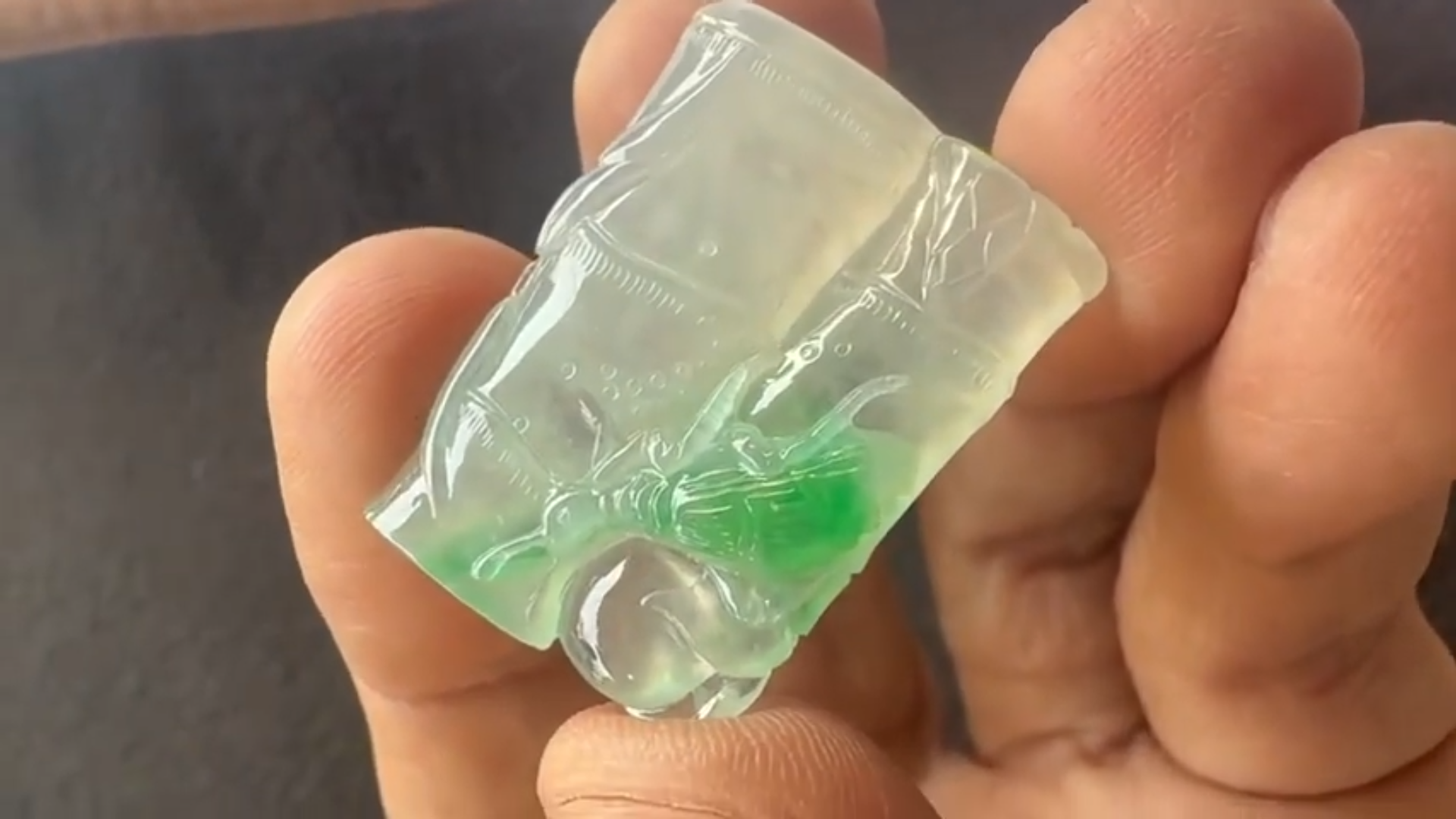 透明度が美しい、氷翡翠カービングのご紹介となります!
