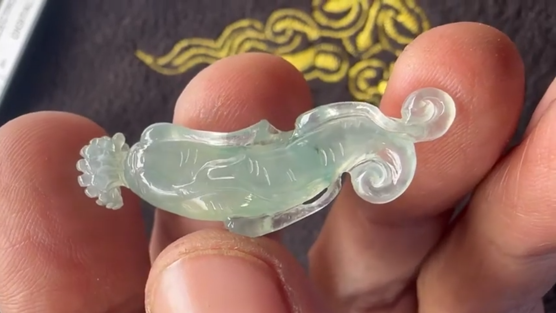 透明度が美しい、氷翡翠カービングのご紹介となります!