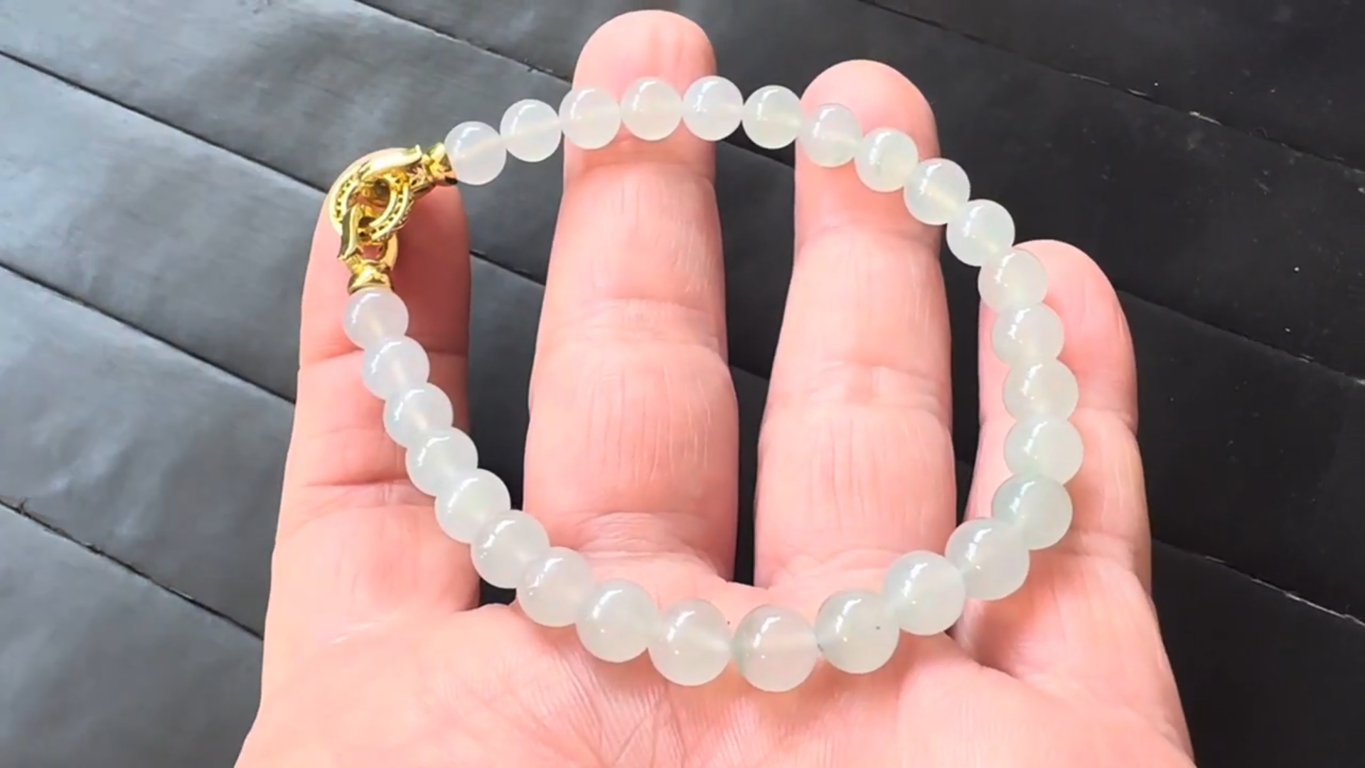 ホワイトカラーが美しい、氷翡翠ビーズブレスレットのご紹介となります!