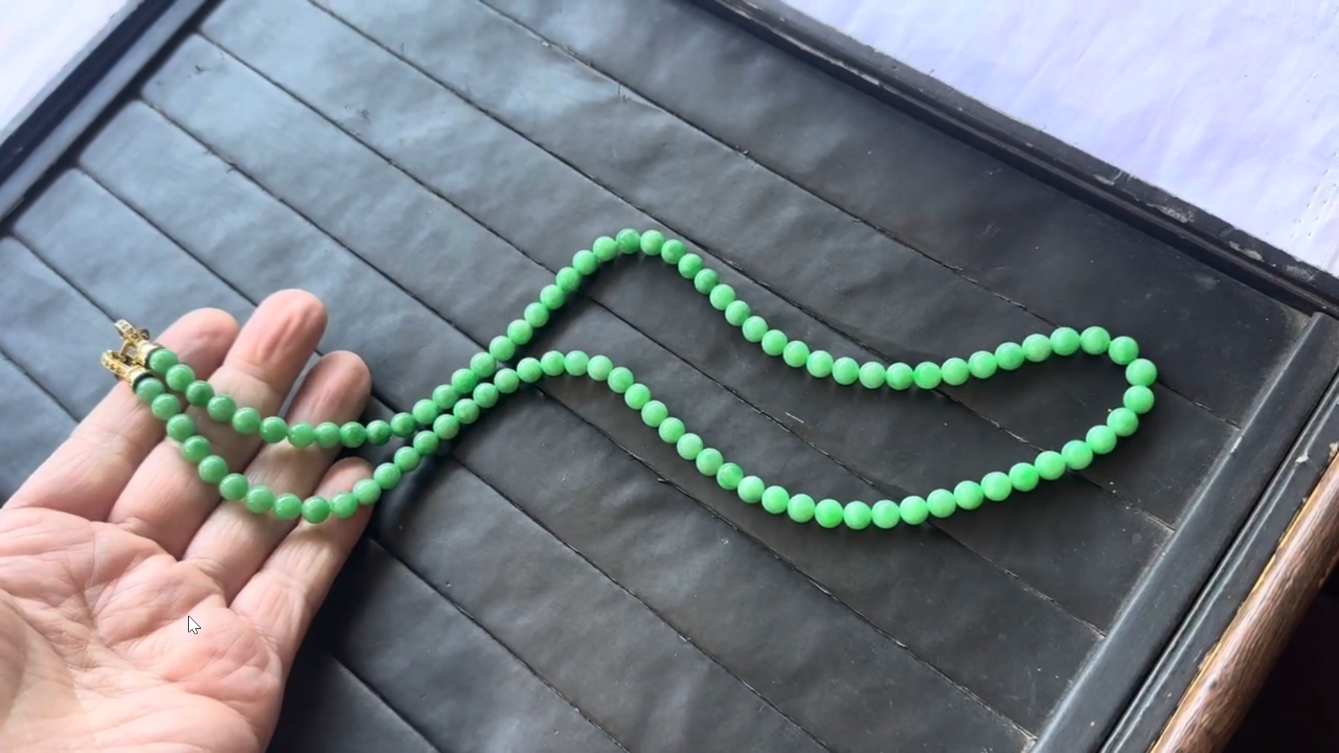 本翡翠ビーズネックレス現地翡翠業者間価格の45万円(税込み)となります。