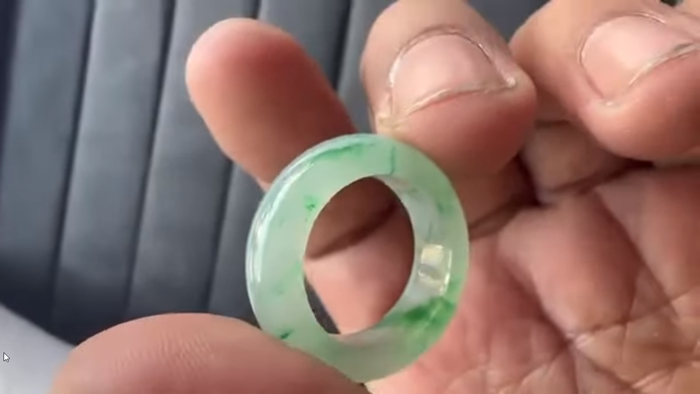 グリーンカラーが鮮やかな、くりぬき氷翡翠リングのご紹介となります!
