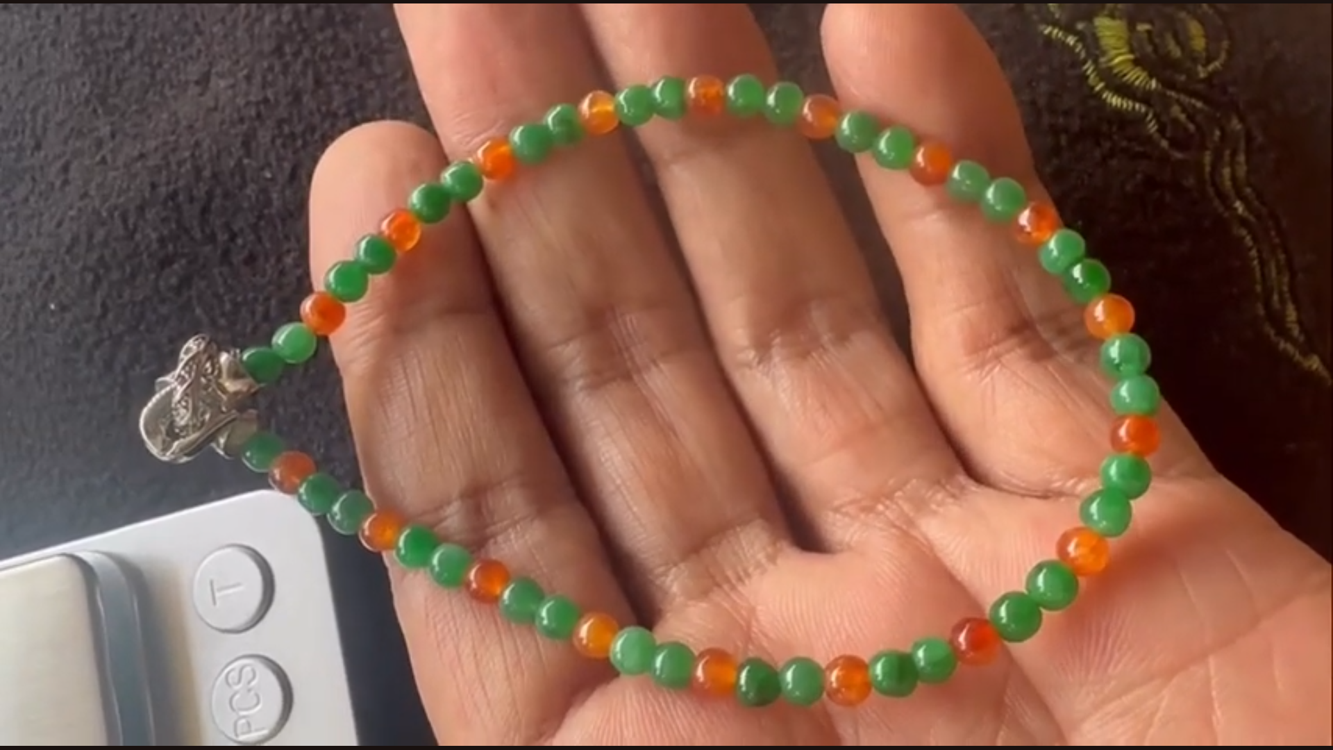 お色が美しい、ろうかん&橙翡翠ビーズブレスレットのご紹介となります!