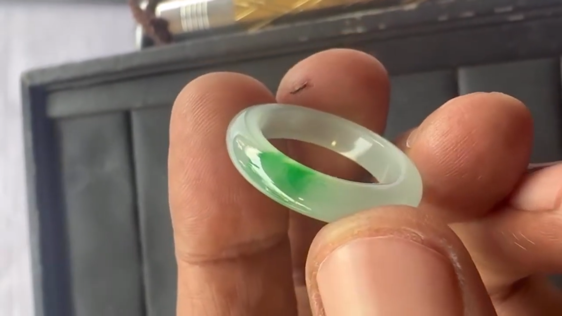 お色が鮮やかな、くりぬきろうかん翡翠リングのご紹介となります!