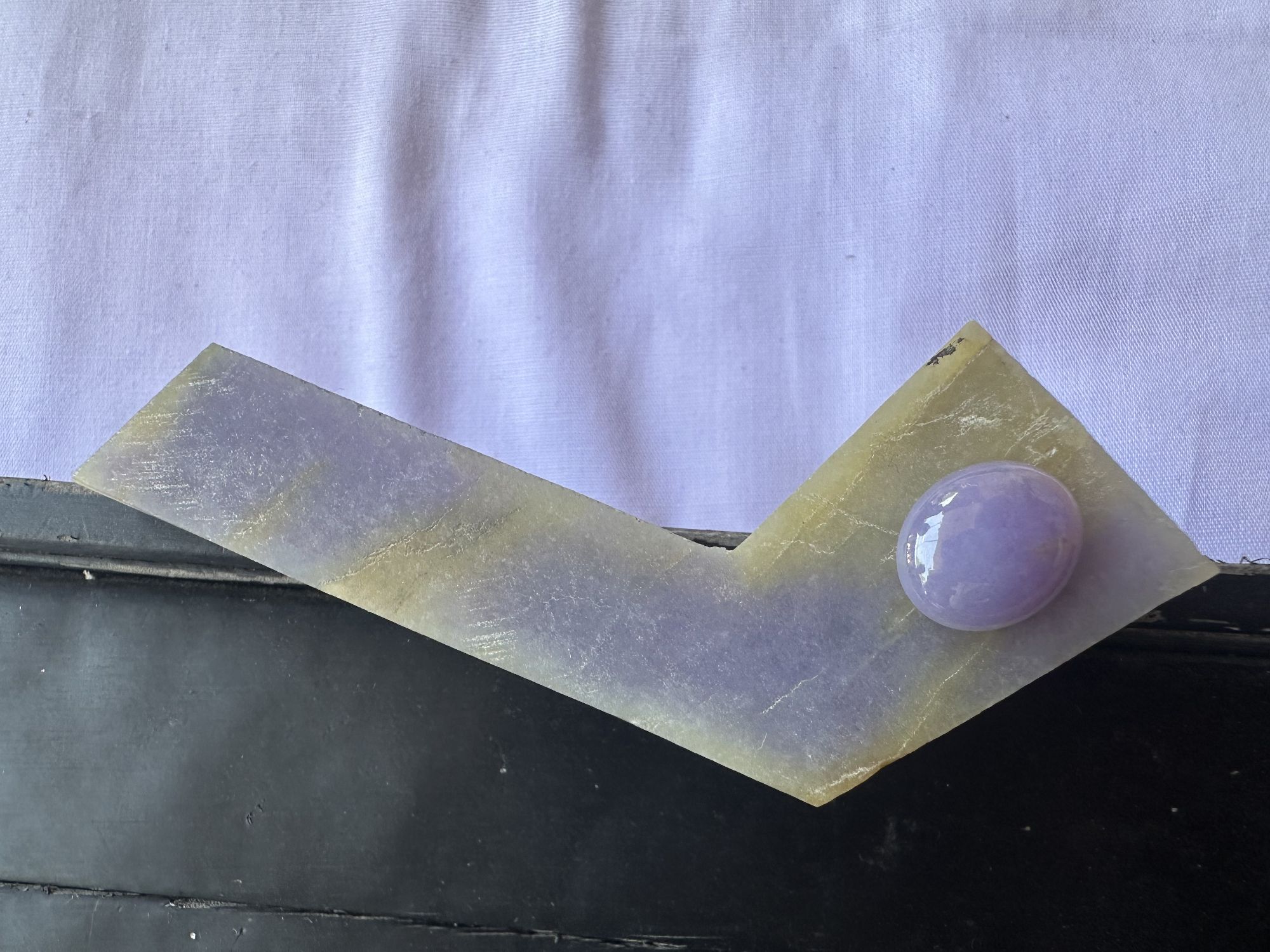 ラベンダー翡翠ルースルースを乗せている原石から一番良い部分をカットしました。