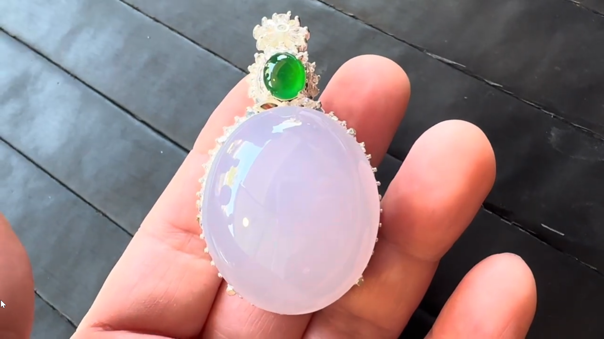 特に目を引く巨大ラベンダー翡翠ルースとなりますが