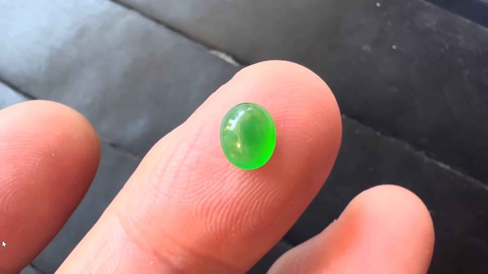 蛍光翡翠ルースとなりまして、どの角度