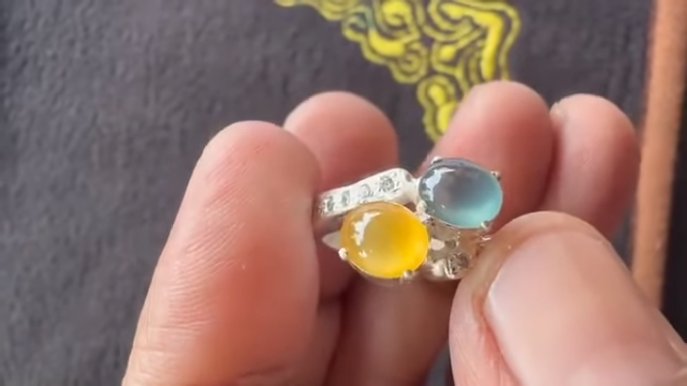 お色がキレイな、格安イエロー&ブルー翡翠ペアルースのご紹介となります。