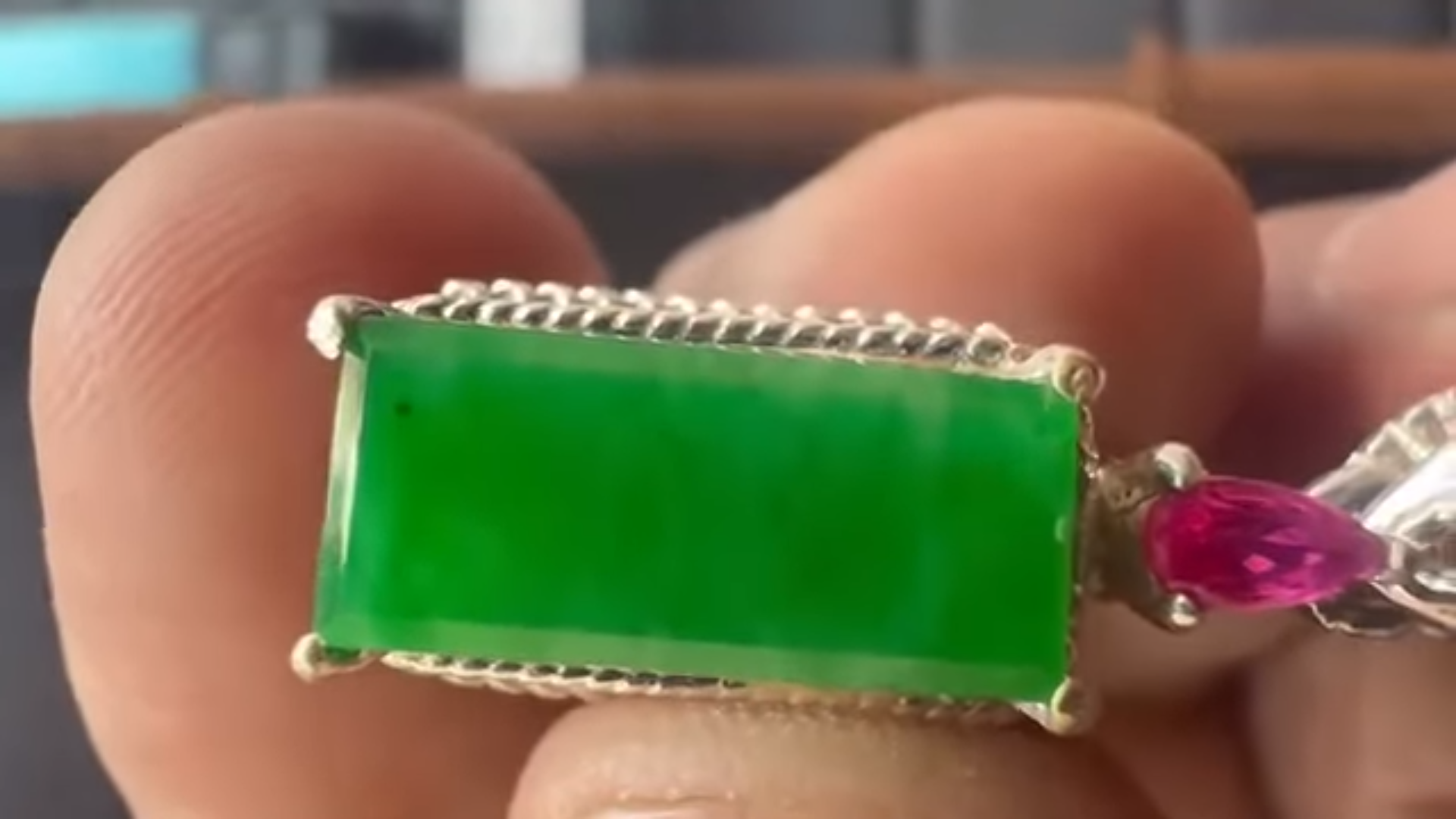 お色がキレイな、ろうかん翡翠プレートルースのご紹介となります!