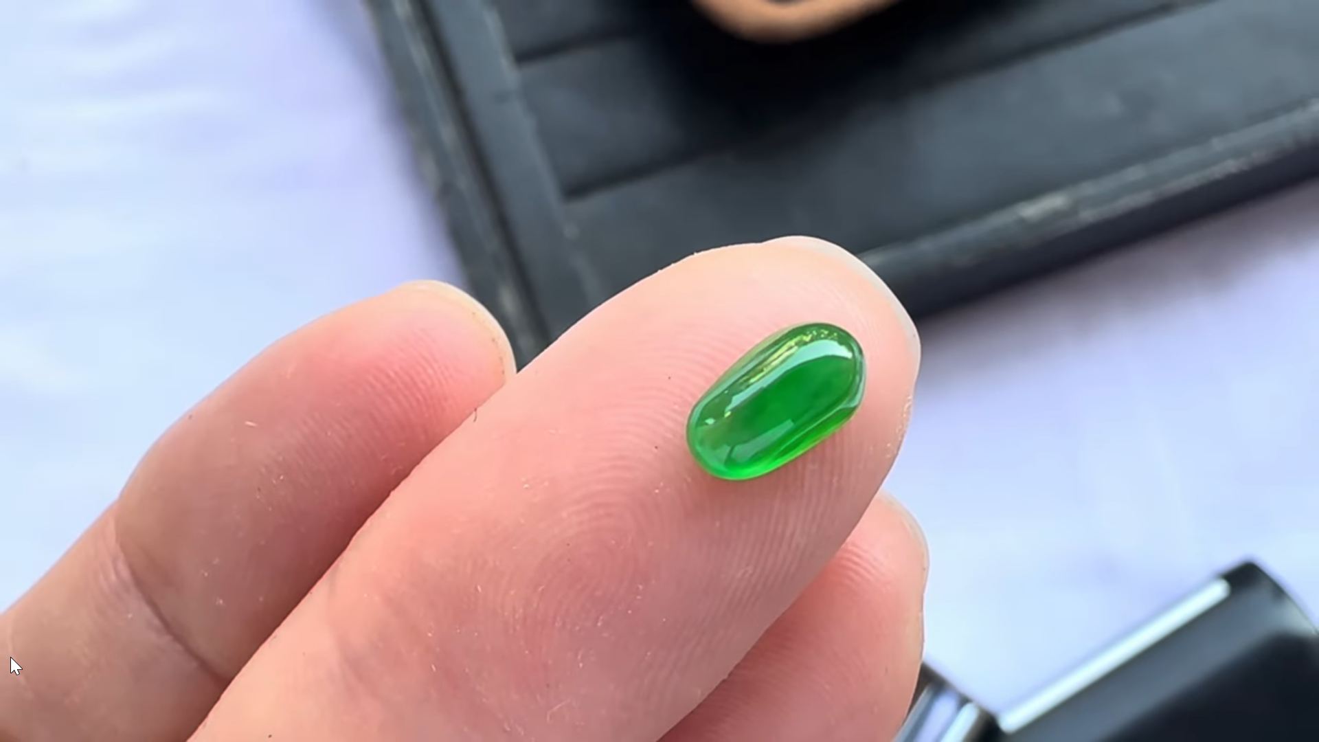 お色がキレイな、格安蛍光翡翠ルースのご紹介となります!