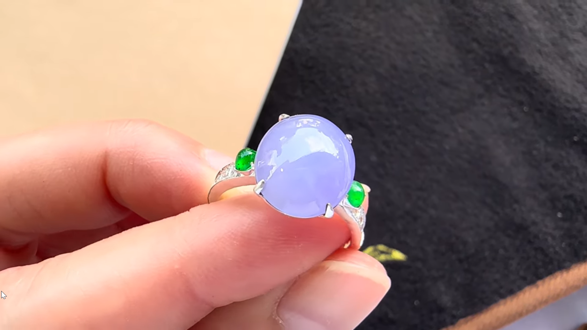 素晴らしいお色の、ラベンダー&ろうかん翡翠ペアルースリングのご紹介となります!