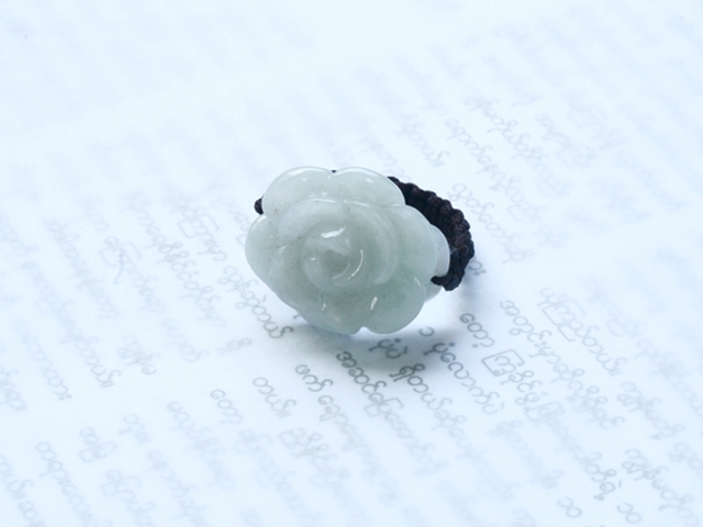ご覧のように、ごく淡いお色目の薔薇のカービングの翡翠リングです。