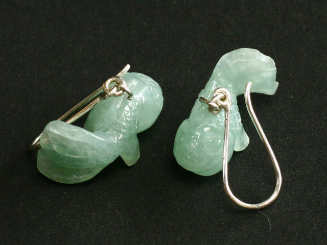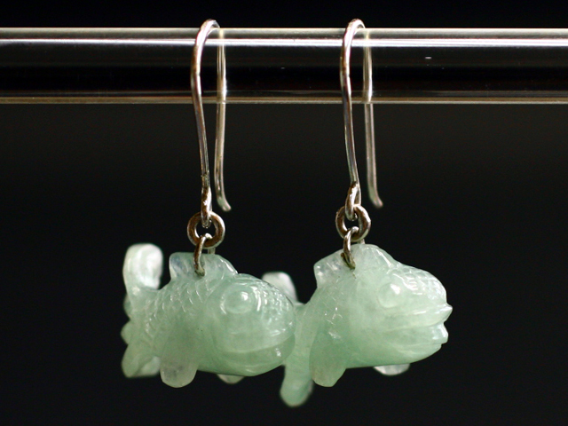透明感が感じられる翡翠で、どことなくユーモラスな表情の金魚を彫り上げました。