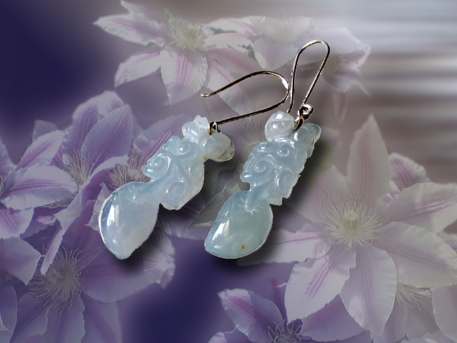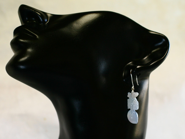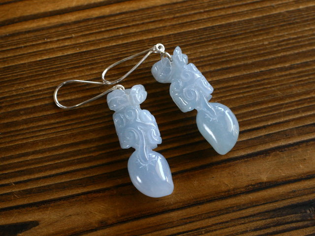 ご覧のように透明感のあるブルーラベンダーの本翡翠彫刻ピアスです。