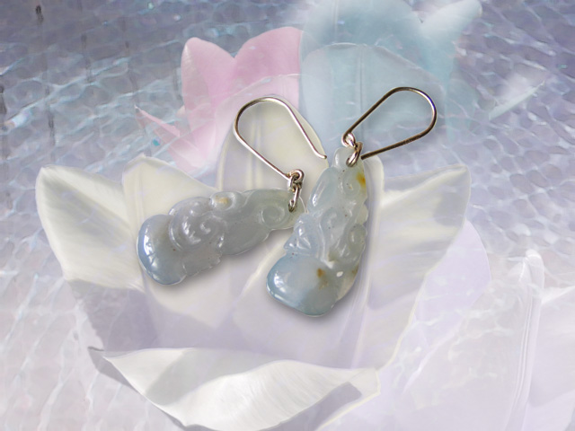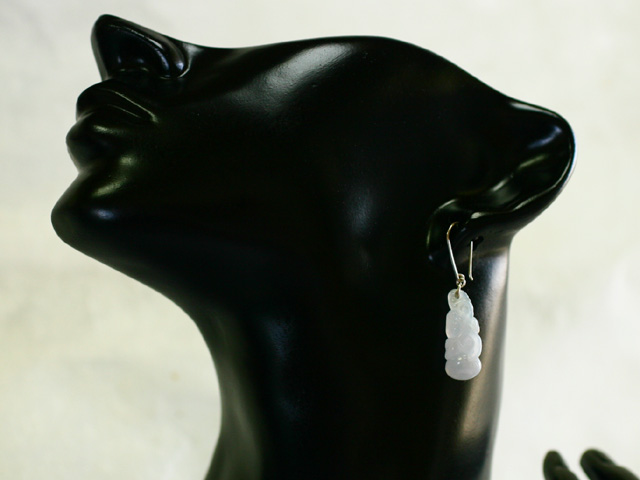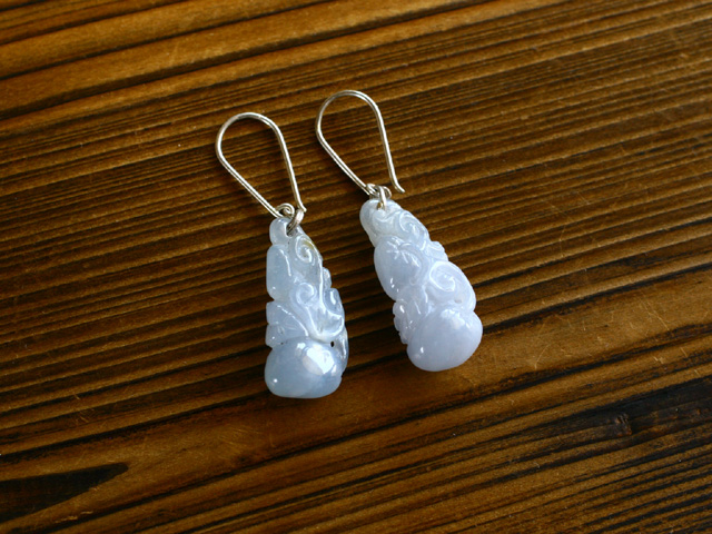ご覧のように透明感のあるブルーラベンダーの本翡翠彫刻ピアスです。