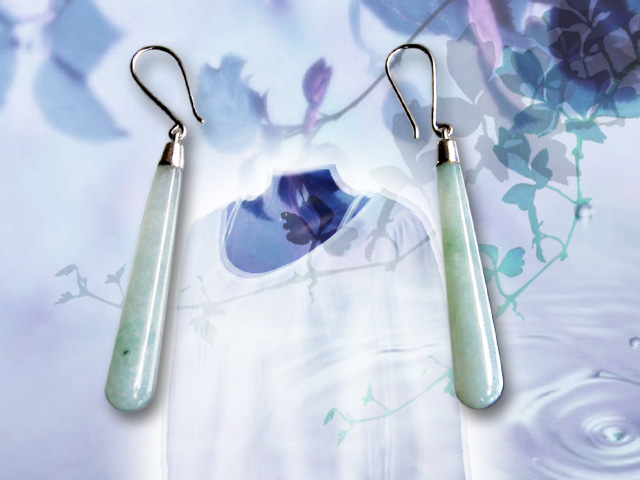 ご覧のように淡い色調のグリーンカラーの本翡翠彫刻ピアスです。
