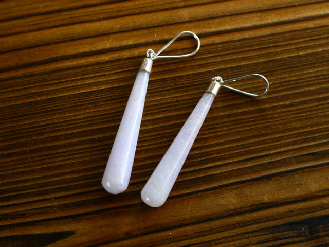 ご覧のように優しいラベンダーカラーの本翡翠彫刻ピアスです。