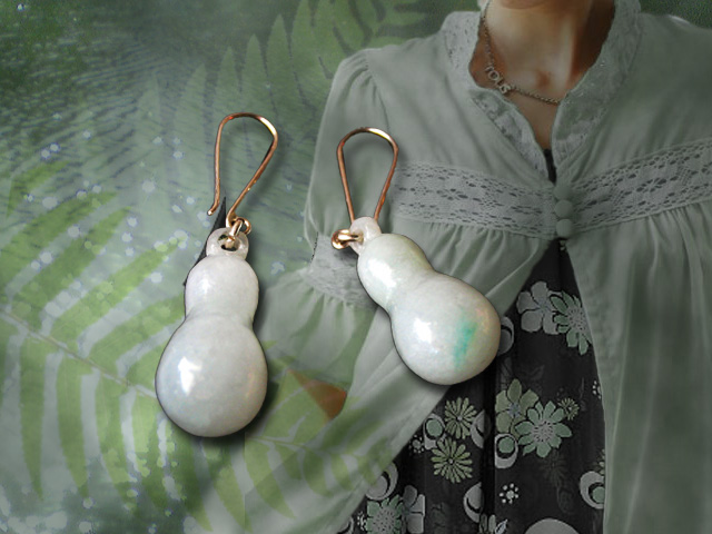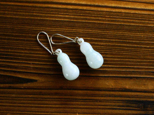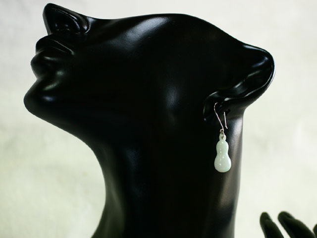 ご覧のように淡翠色の本翡翠彫刻ピアスです。