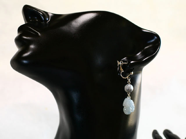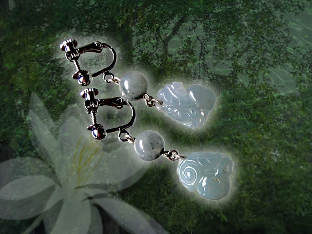 ご覧のように透明感のあるラベンダーグレーの本翡翠彫刻ピアスです。