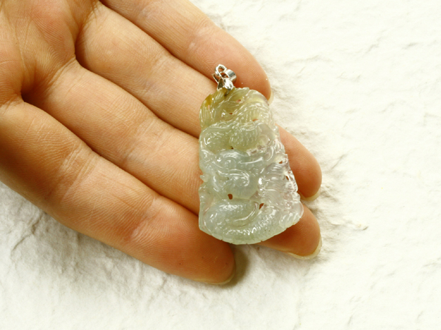 ミャンマーパカン産無処理本翡翠彫刻ペンダント トップのご紹介です。