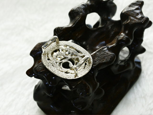 写真でお分かりいただけると思いますが、レアカラーの黒翡翠を中央に配した熟練の職人の手による繊細な銀細工の帯留めです。